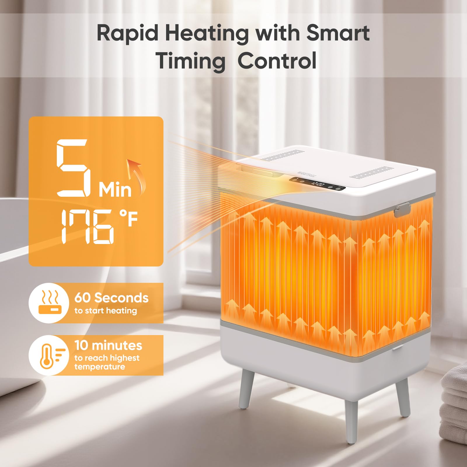 Smart Guardian Technology: The hot towel warmer features a user-friendly control panel. Your bathroom towel warmer offers customizable temperature and timer settings for personalized use. Built-in safety features include overheat protection and auto power-off. ETL certified and waterproof design ensures safe operation in any bathroom environment