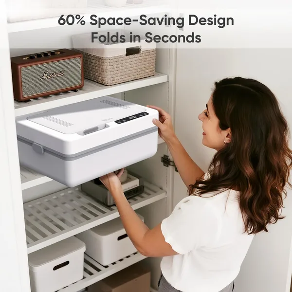 Space-Smart Marvel: Your compact towel warmer brings luxury to any bathroom while saving 60% storage space when not in use. This innovative bathroom towel warmer features a spacious interior with a convenient hanging rail for full-size bath towels and garments. Perfect for family use, the thoughtfully designed hanging system ensures optimal heating performance while transforming any bathroom into a spa-like retreat