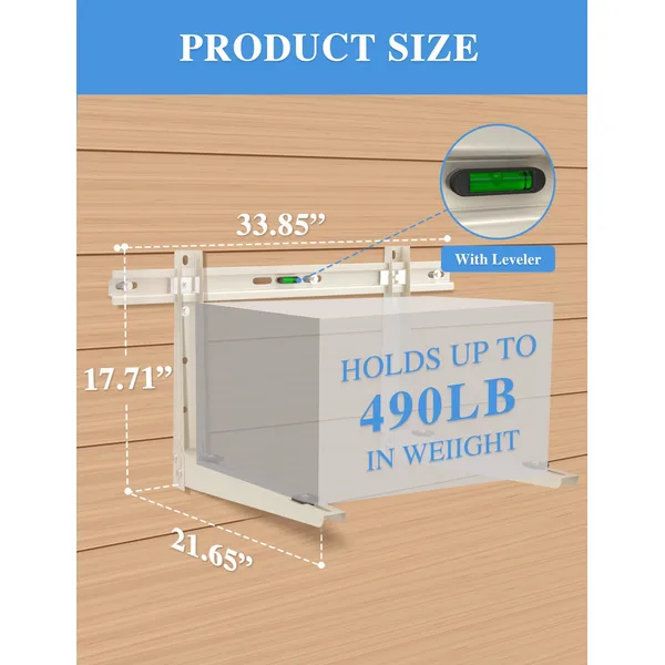 2 Sizes Available: WEETALL air conditioner mounting bracket fits for most brand of split air conditioners. This is for 7000-24000 BTU and support up to 490lbs, and another is for 7000-12000 BTU and supports up to 400lbs