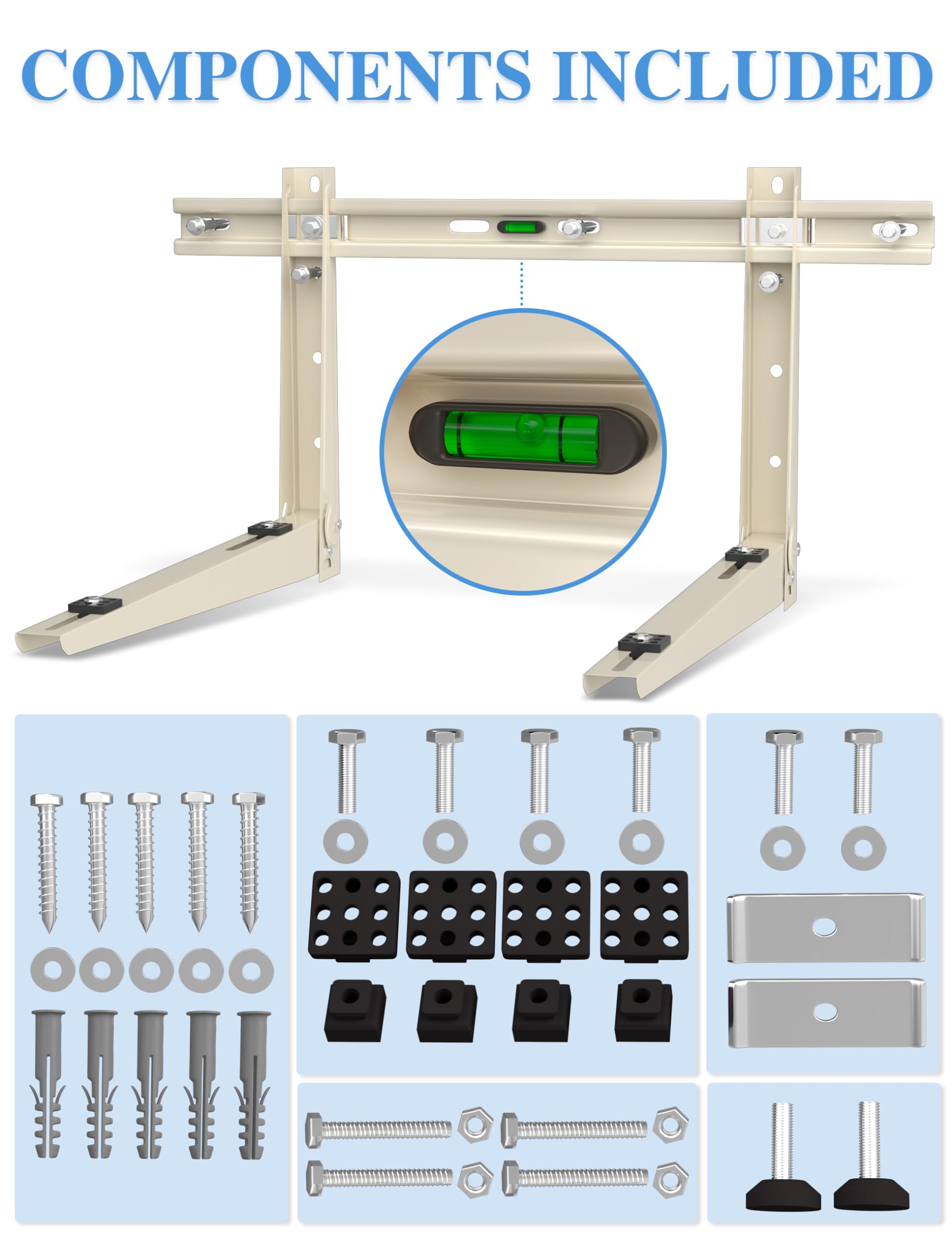 Additional advantages:Feeling-4 rubber pads are added to minimize the transmission of vibration from the unit to the 24000 btu wall brackets and make your AC super quiet while running